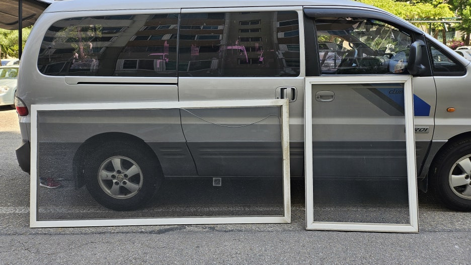 (방충망이 워낙 커서 엘리베이터에 겨우겨우 싣고 내려갔습니다...)