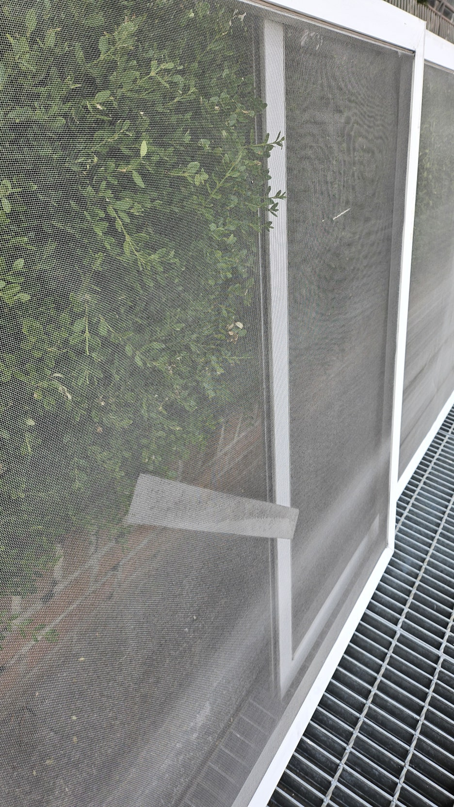 찢어지고 부식이 진행중인 알루미늄 방충망의 상태