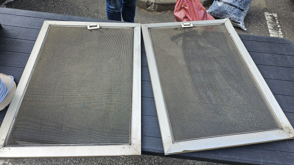 방충망 부식: 알루미늄 방충망이 오래되어 부식이 시작되었고, 유해한 알루미늄 가루가 발생하고 있었습니다.