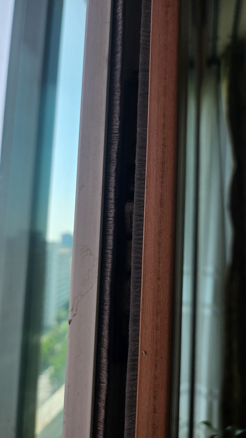샷시 모헤어 노후: 방충망뿐만 아니라 샷시 자체의 모헤어도 낡고 닳아 틈이 발생했습니다. 이로 인해 벌레와 미세먼지가 유입될 수 있는 통로가 추가로 존재했습니다.