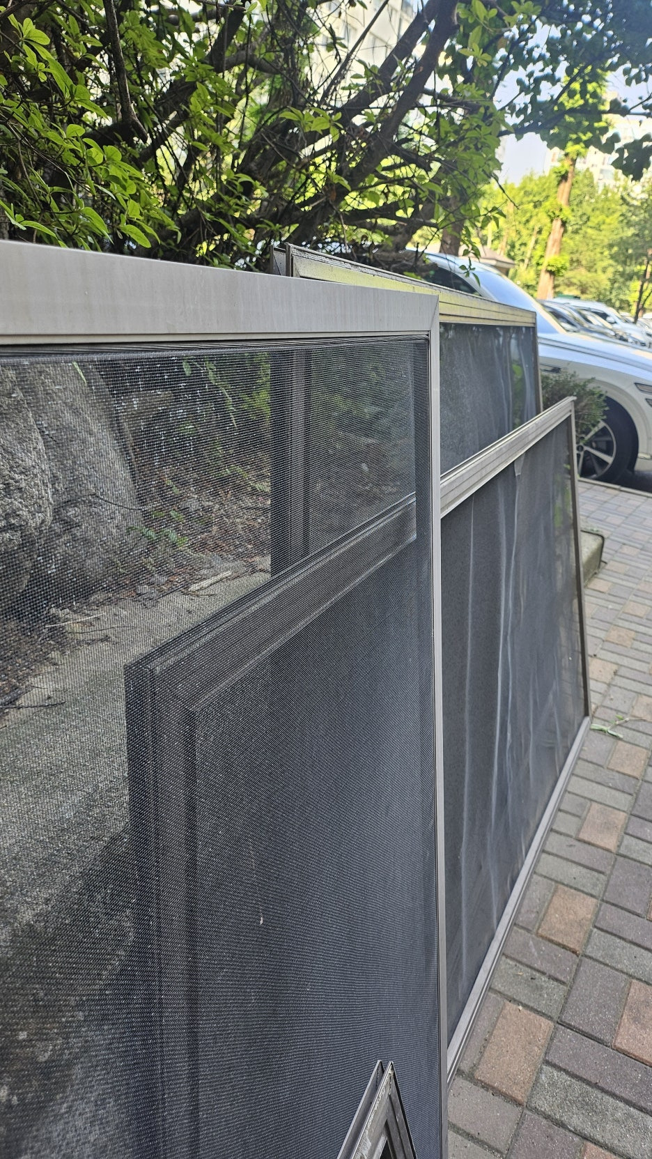 1층 작업 공간으로 모든 방충망을 옮깁니다.