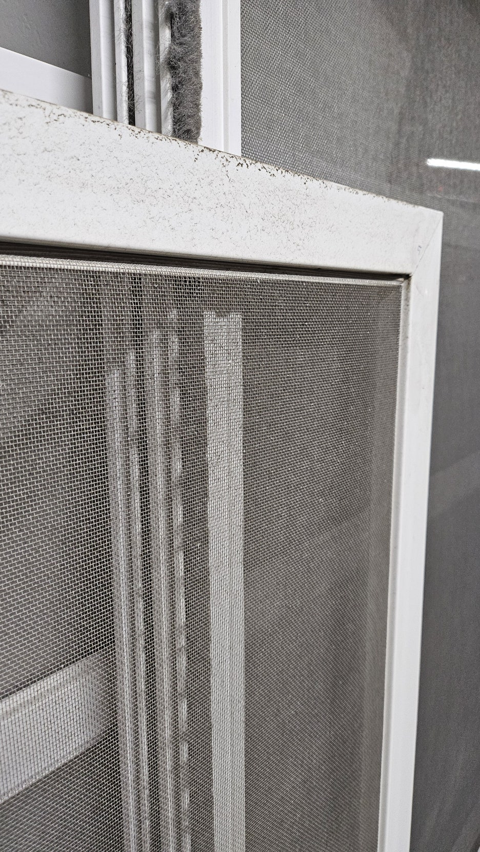 방충망 틀에는 수년간 쌓인 먼지와