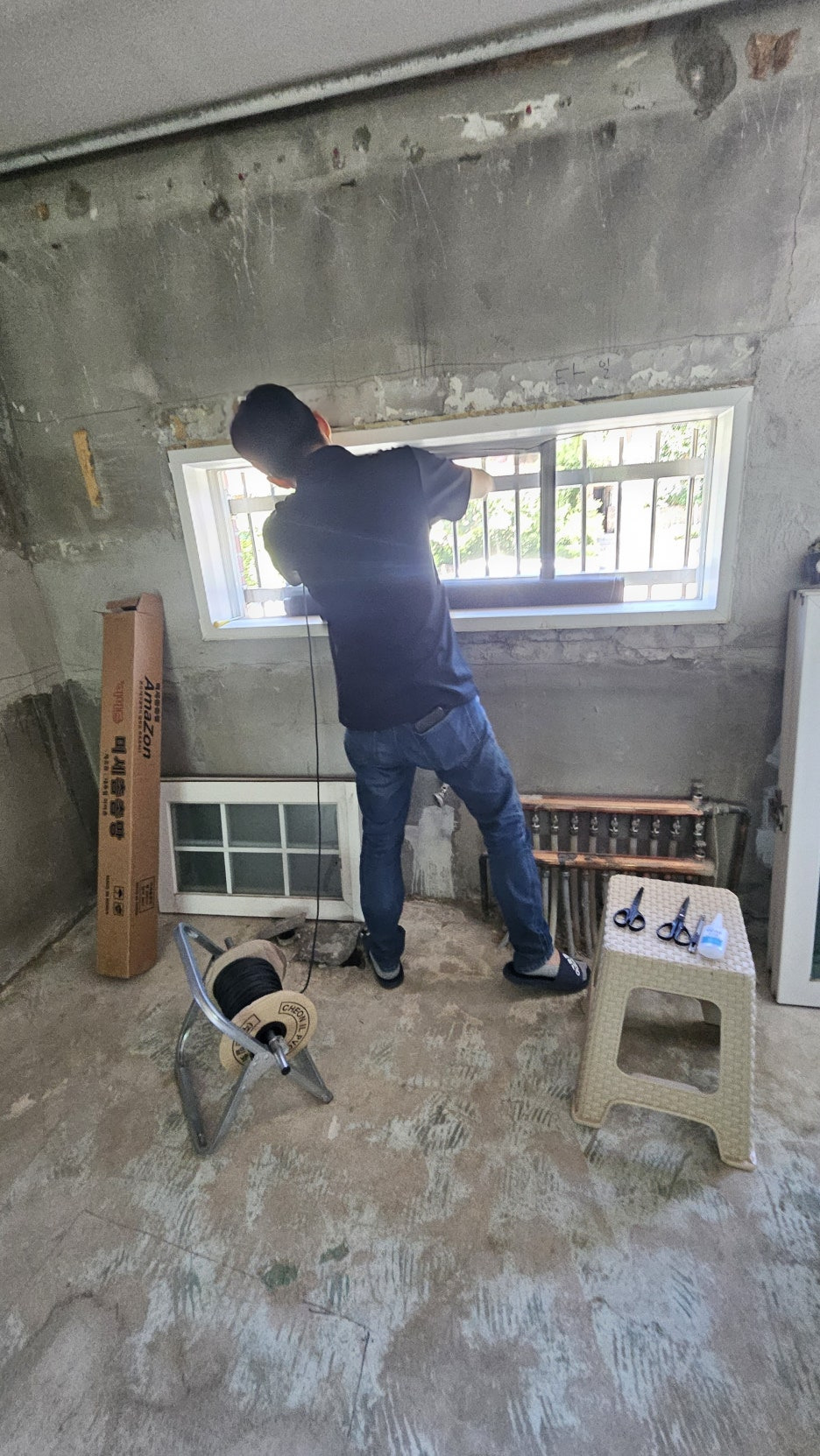 샷시 창문을 통째로 들어내어