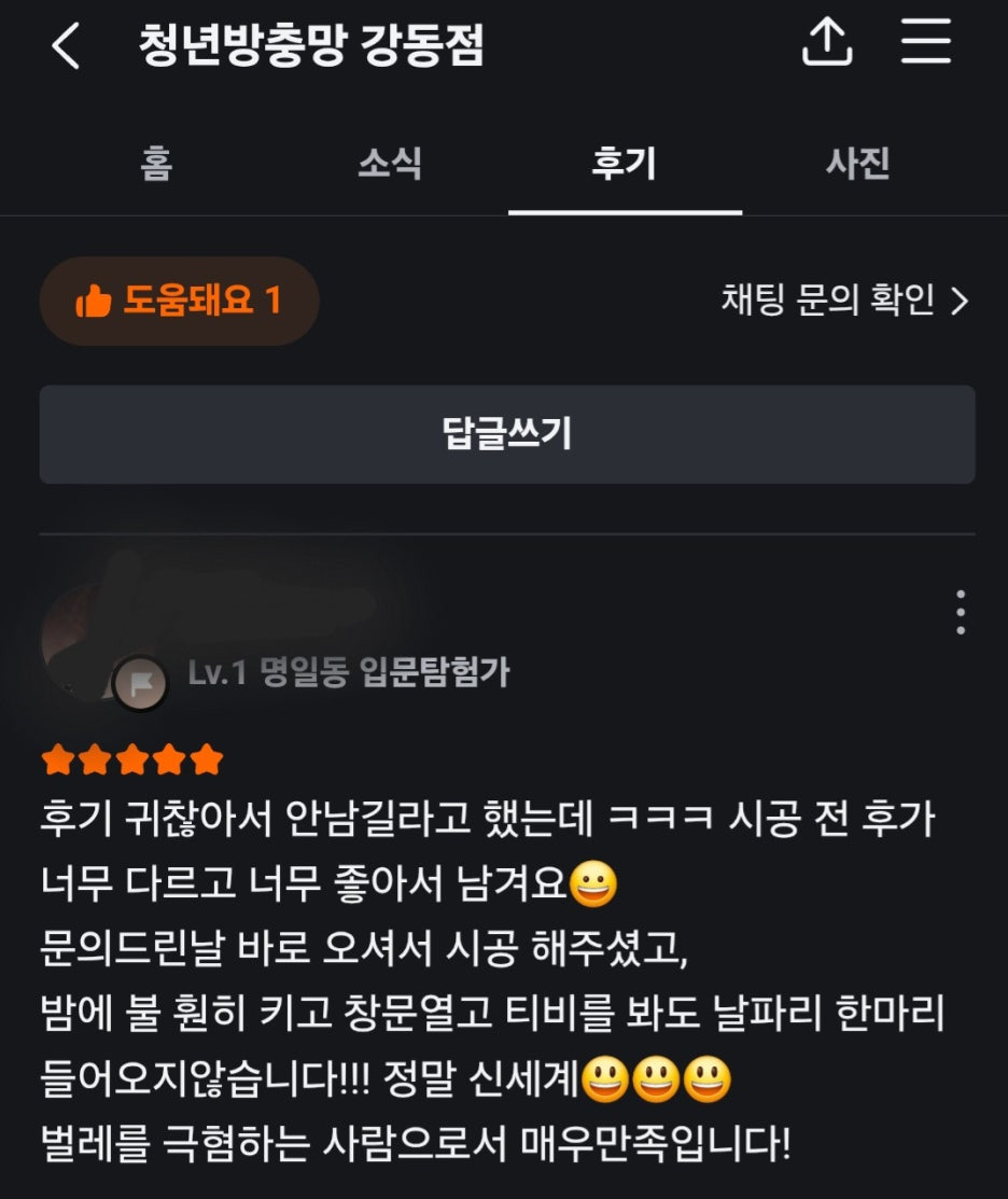 그래야 벌레가 들어올 틈이 완벽하게 차단되니까요!