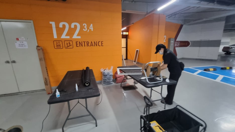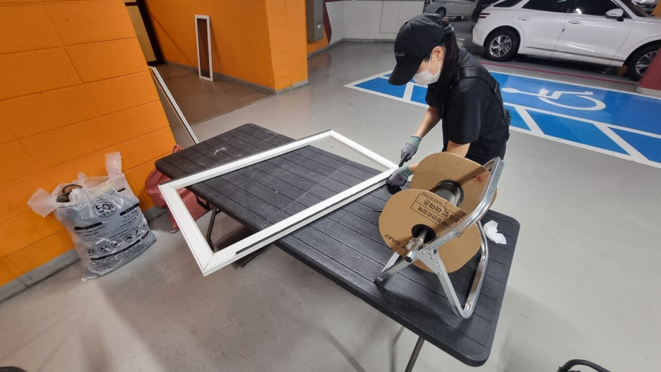 모두 지하주차장으로 옮긴 뒤 붓으로 먼지를 털고, 물티슈로 프레임까지 닦은 후 다시 설치했죠.