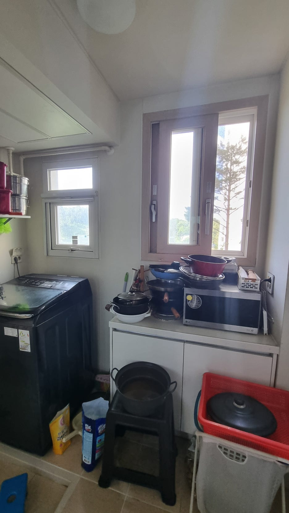거실에 설치된 기존 롤방충망 2개는 실측 후 철거 예정으로 확인했고,