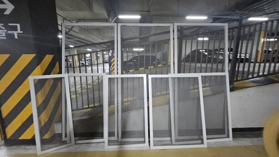 모든 방충망을 들고 지하주차장으로 이동해 교체 작업을 진행했습니다.