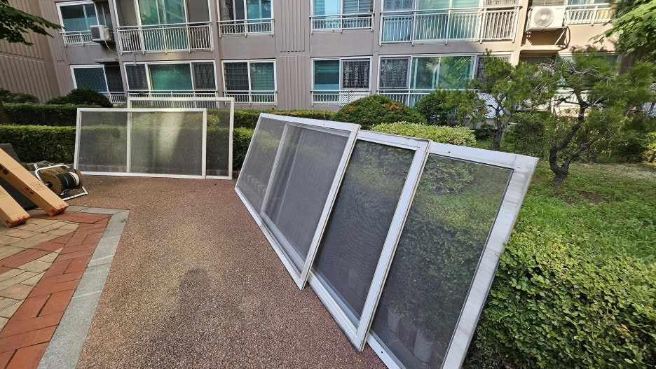 기존 방충망을 안전하게 탈거하는 것입니다.