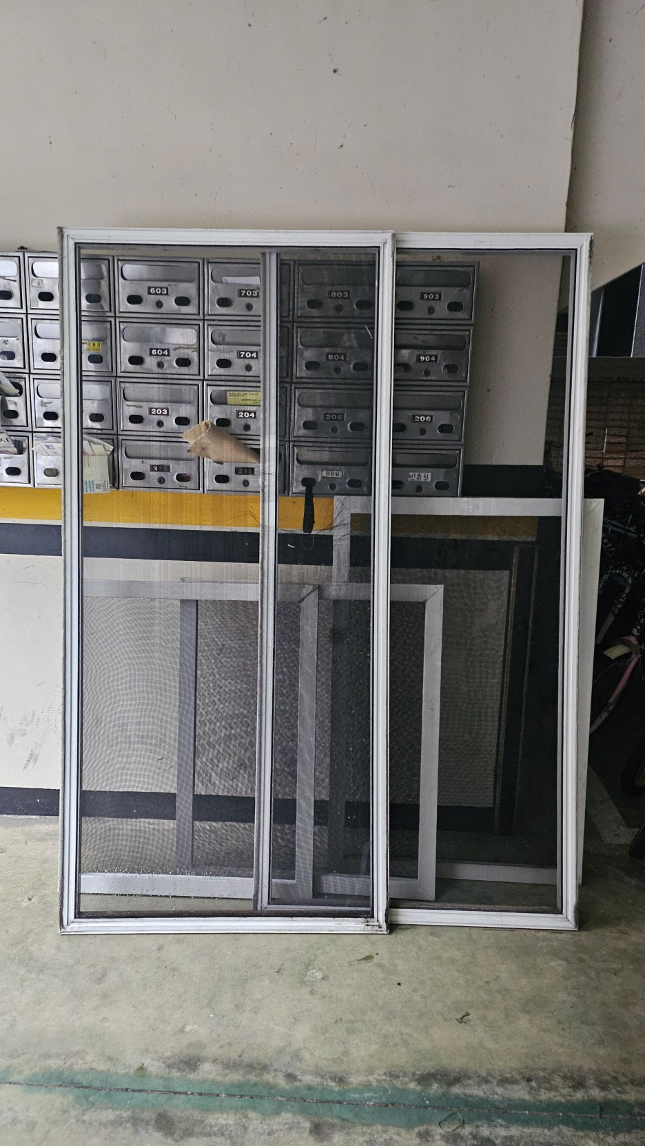방충망 틀 상태가 비가와서인지 먼지와 많이 섞여있습니다