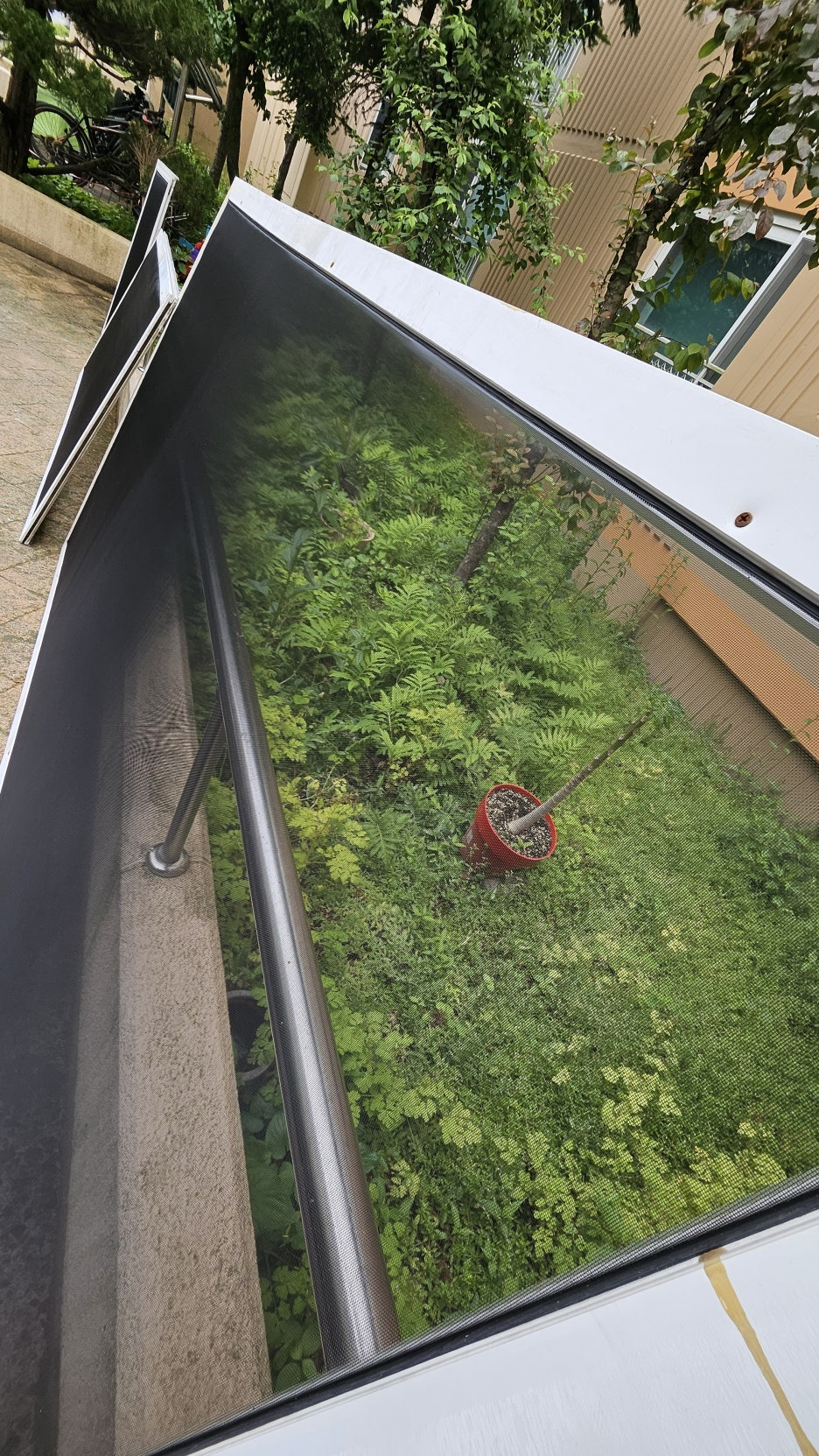 모든 방충망을 탈거한 뒤, 1층으로 내려가 본격적인 교체 작업에 돌입했습니다.