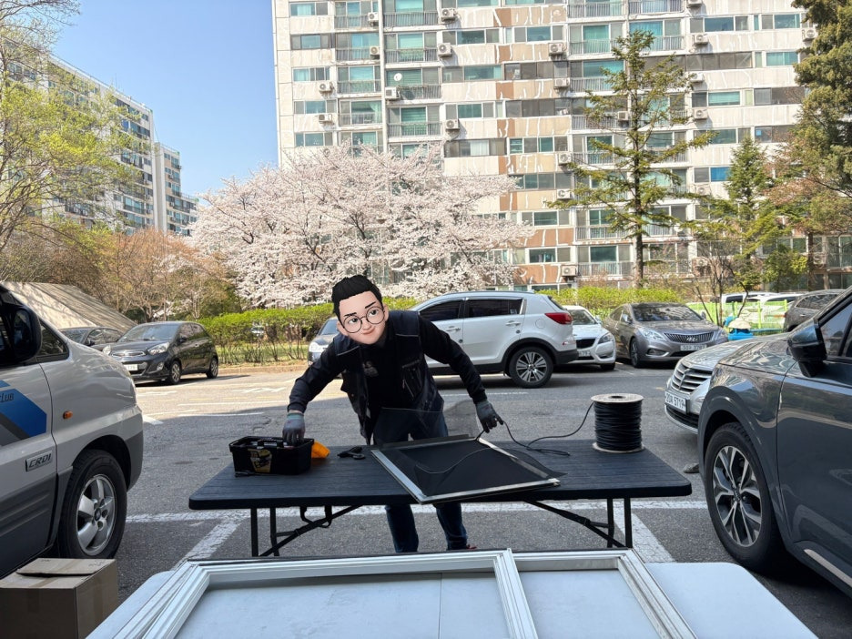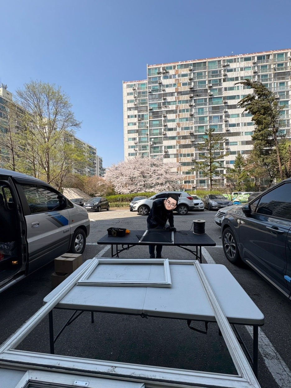 이제 모든 짐을 싸서 고객님의 집으로 가서 기존 방충망을 끼워주고~