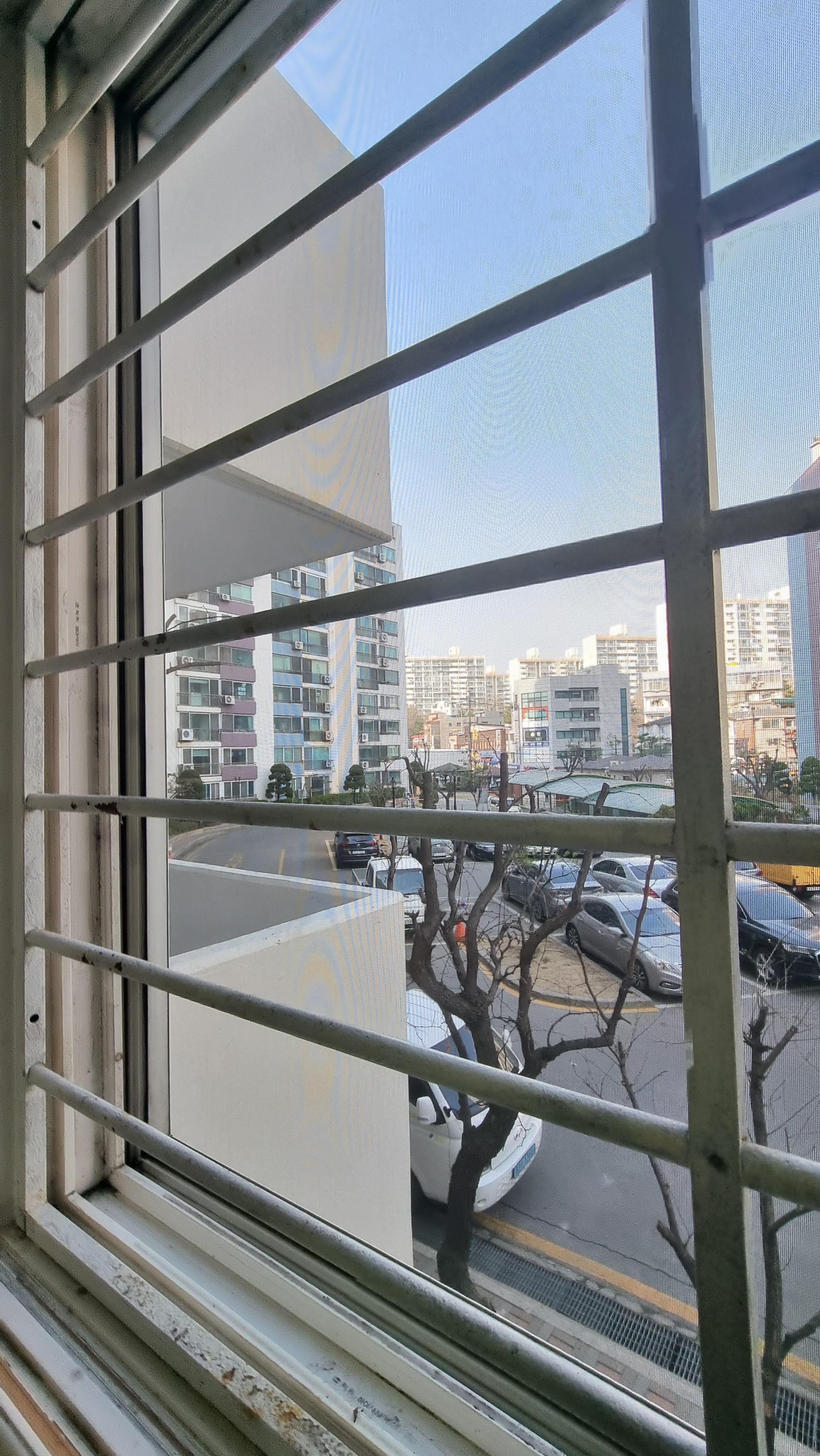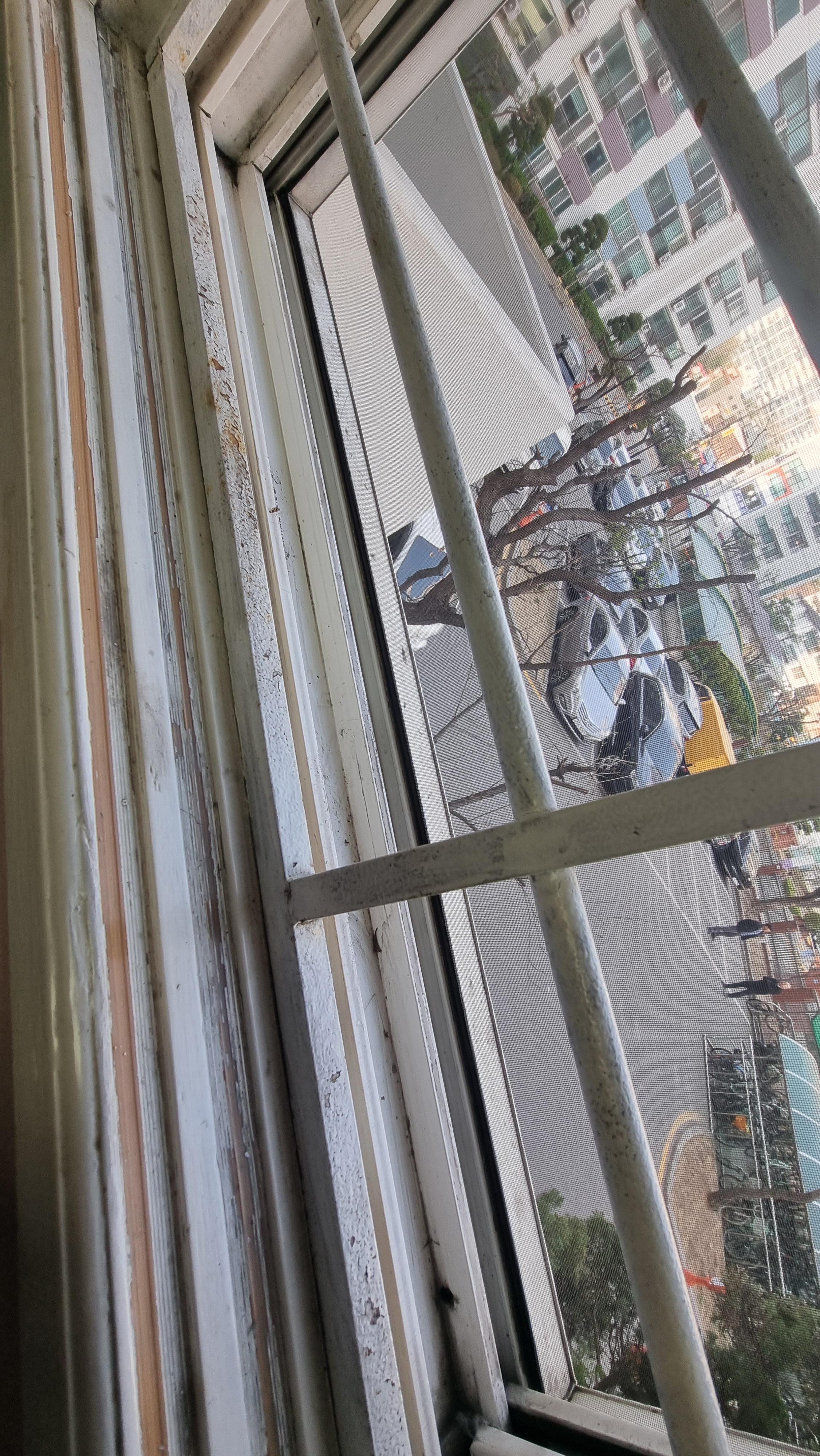 방충망이 방범창이 안에 있으면 창문을 빼고 내리면 되는데...