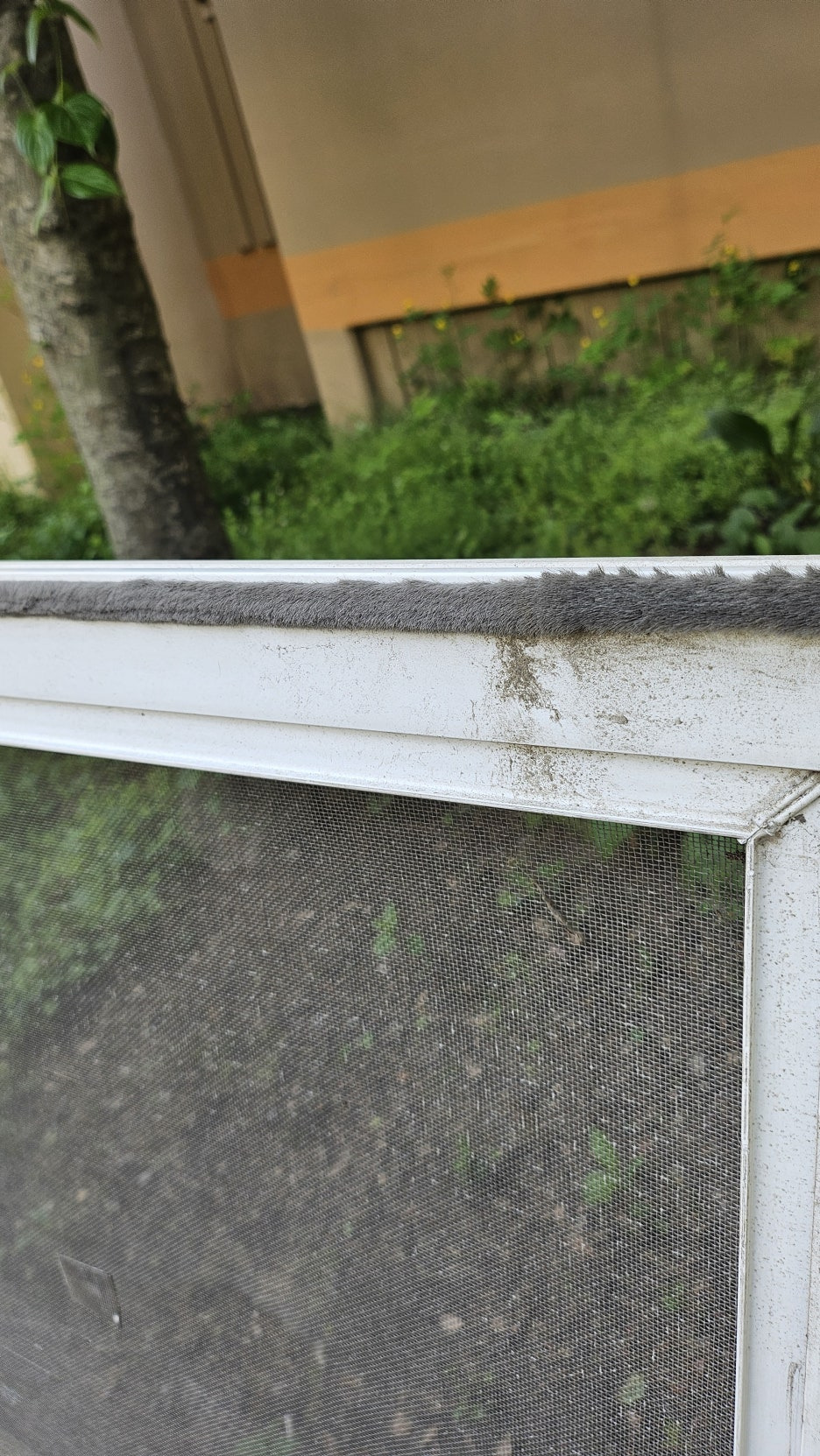 알루미늄 프레임은 변색되고, 망은 먼지와 털 날림이 심했으며,