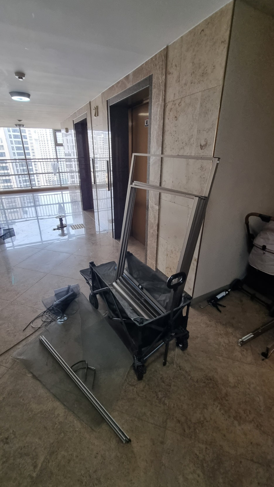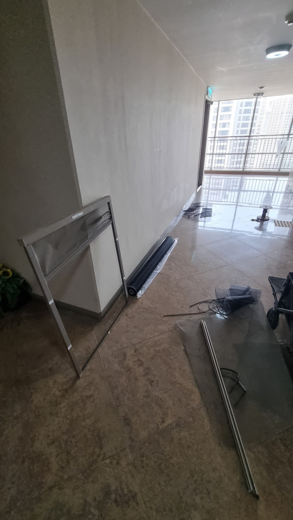 복도가 워낙 넓어 망 교체도 복도에서 진행을 했습니다.