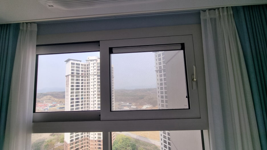 시공 후 사진! 깔끔하죠? 창문에 전혀 방해되지 않습니다!