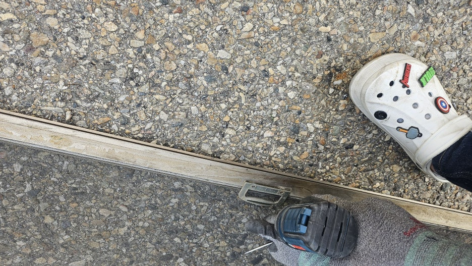 하지만 눈에 띄는 건 방충망이 레일에 정상적으로 들어가지 않는 상황이었습니다.