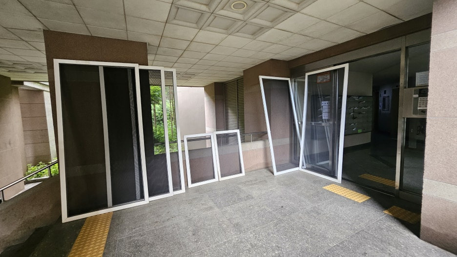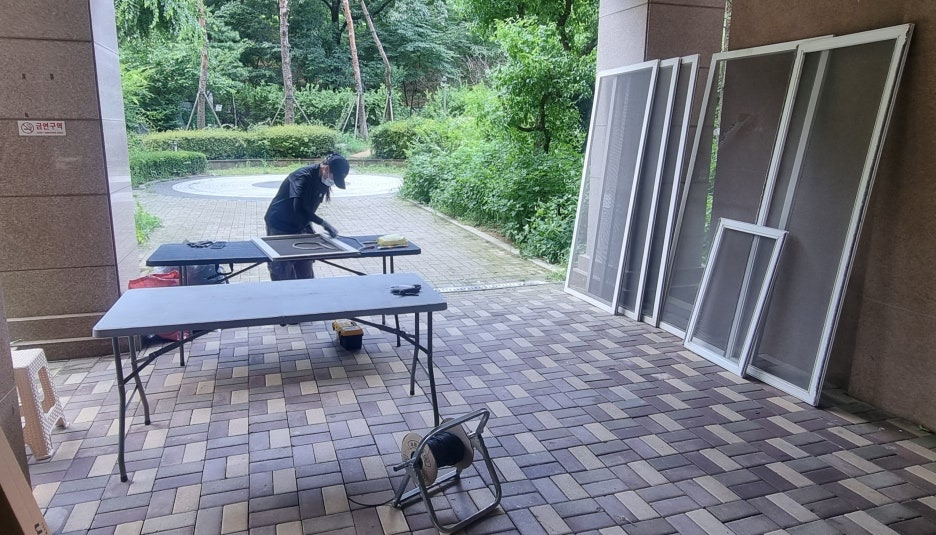 1층 작업 공간으로 방충망을 옮겼습니다.