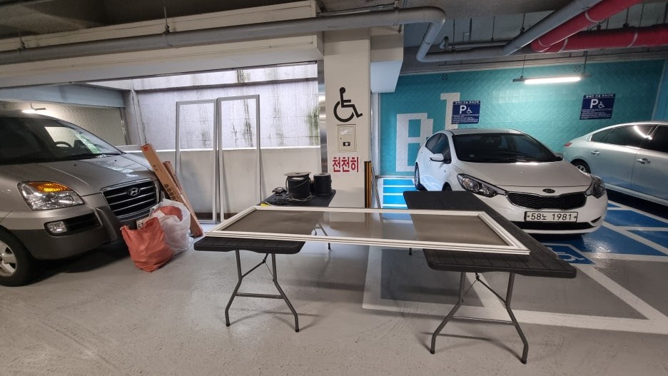 지하주차장에서 준비를 한뒤 작업을 하였습니다^^