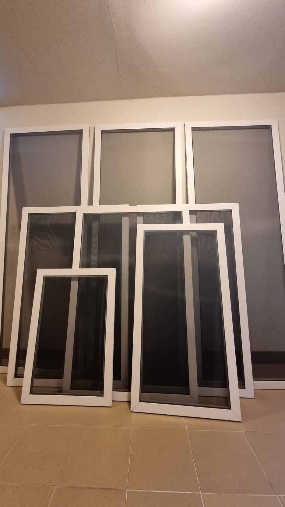 결과적으로 대형 3개, 중형 5개 전창 모두 발수망(연잎망)으로 깔끔하게 교체 완료! 🌧️