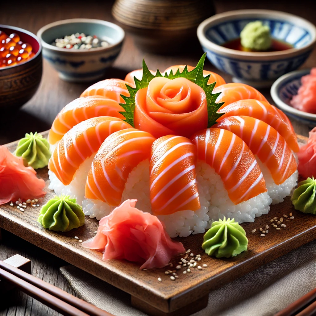 연어 초밥 – 부드러운 식감과 고소한 맛이 일품이에요!